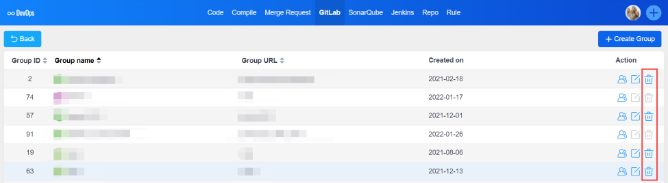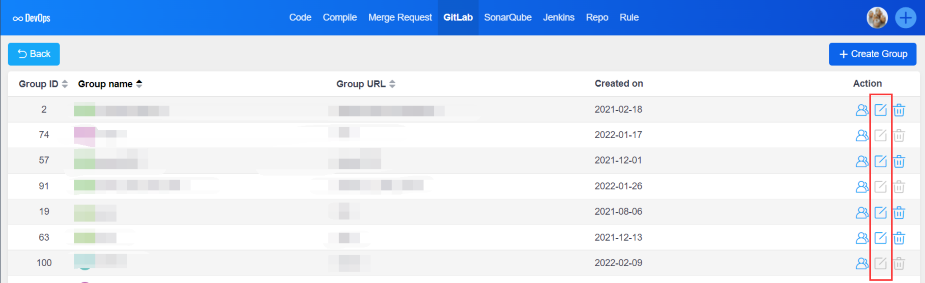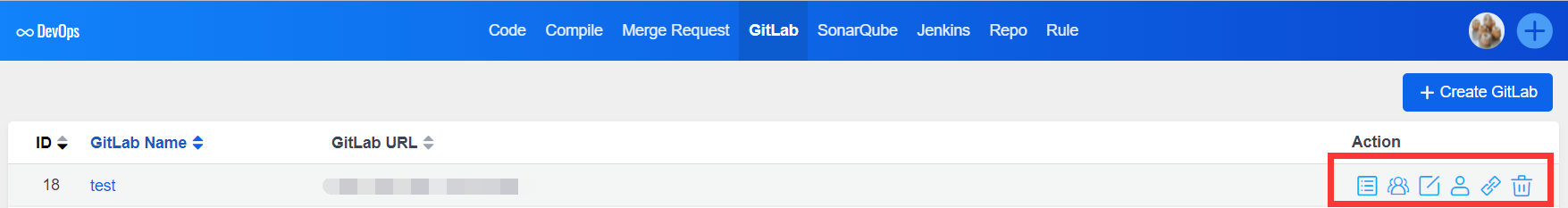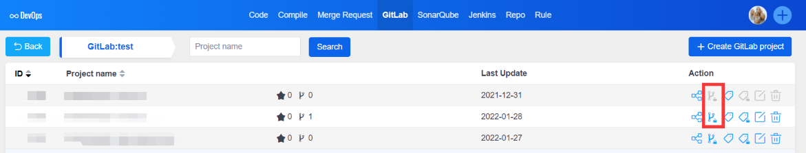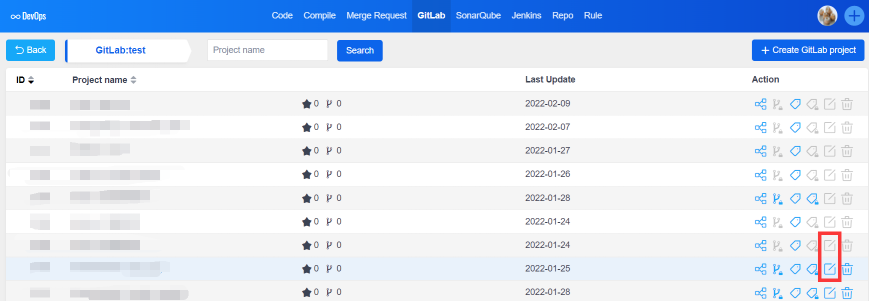 - Assuming that the ZenTao user has been bound with the GitLab server user, the buttons in the GitLab server operation column can be clicked;
