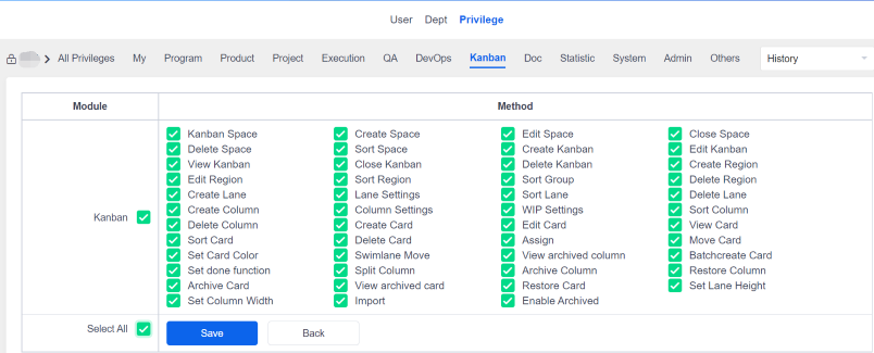 The General Kanban is a general-purpose function, and all privileges are recommended to be open.