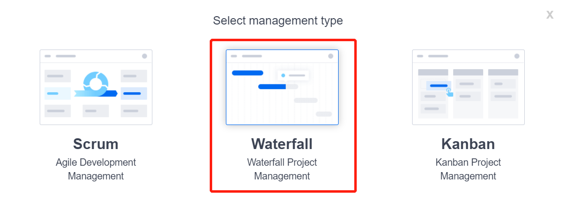 Click Waterfall (Waterfall Project Management) to jump to the Create Waterfall Project page.