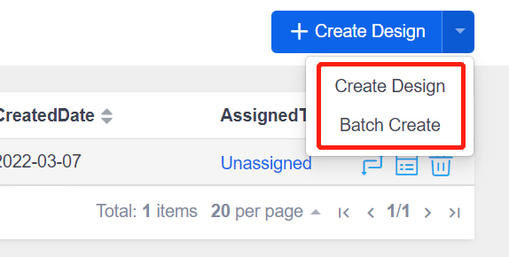 Click the "Create" button on the right of the summary design to create and batch create designs.