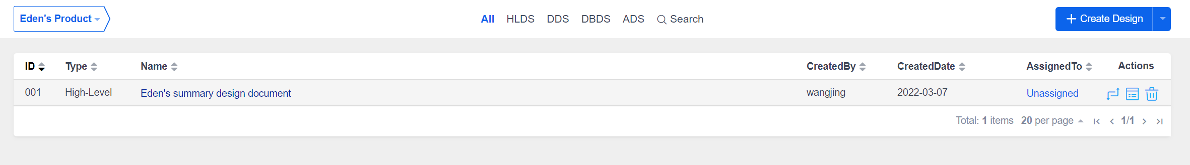 You can search through the All, Summary Design, Detailed Design, Database Design, and Interface Design tags, or you can search and view according to conditions.