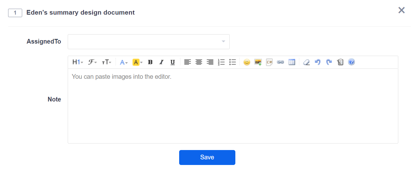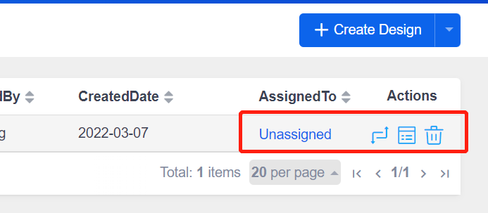 Assigning a design brief can be done by clicking on the AssignedTo. The assignee can go to view and make changes to the design document.