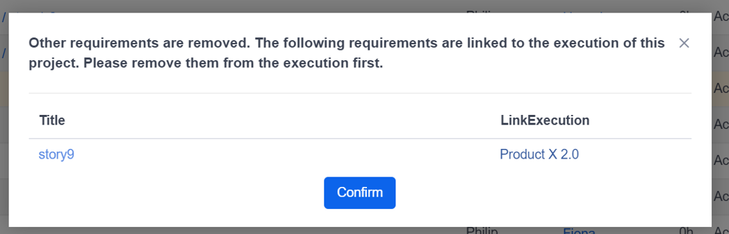 Prompt when a project removes a requirement that has been associated to a project executed: