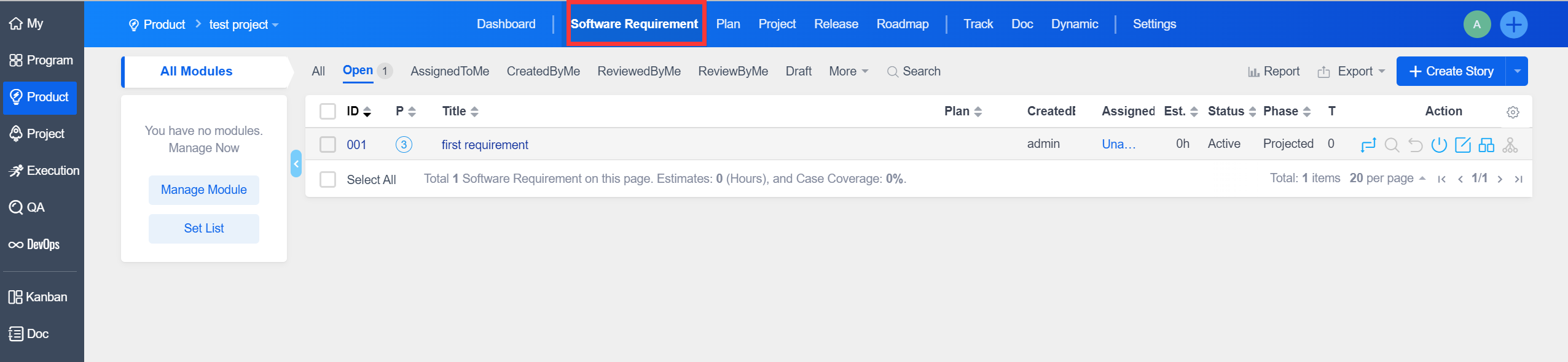 In ZenTao version 15, the selection of requirement concepts has been added. You can choose to use software requirements, R&D requirements, soft requirements, stories, and demands as the concepts to be displayed in ZenTao according to your preferences and habits.
