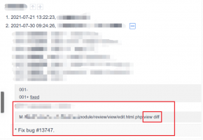 On the Bug details page, you can click view diff in the history record to view directly.