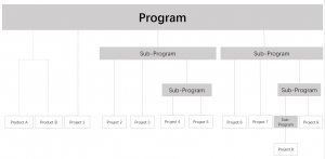 As shown in the picture below, Program is located at the highest level, one or more Sub-Programs, Products, and Projects can be managed under it, but Product can only be linked to the top-level Program.