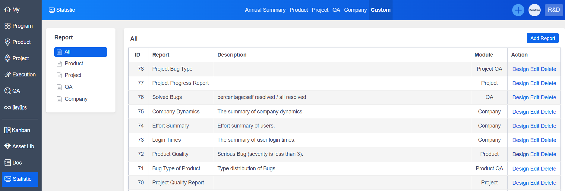 With the Crystal Report, users can write their own Structured Query Language (SQL), design reports based on the query results, and then generate the required reports. This function is very powerful and flexible. In the "Statistic" section, there are some built-in reports that can be used directly or as a reference to be modified on this basis.