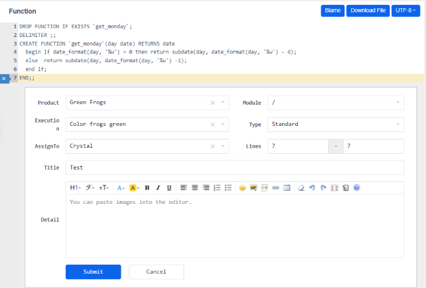 Code review feature is integrated into "DevOps" in ZenTao Biz series. Click here to learn more about code repository creating, diff, and synchronizing with GIT.