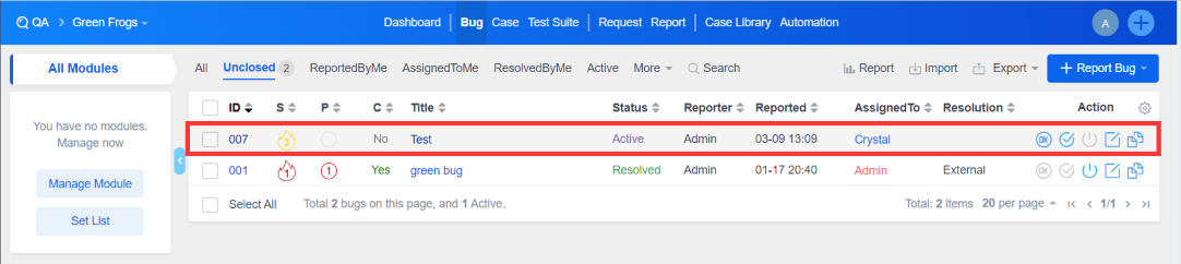 You can also view it in "DevOps" - "Review" or in the corresponding product "Bug" list.