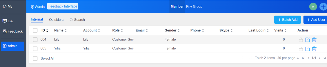 2.1 Edit the Privilege in the Feedback Interface