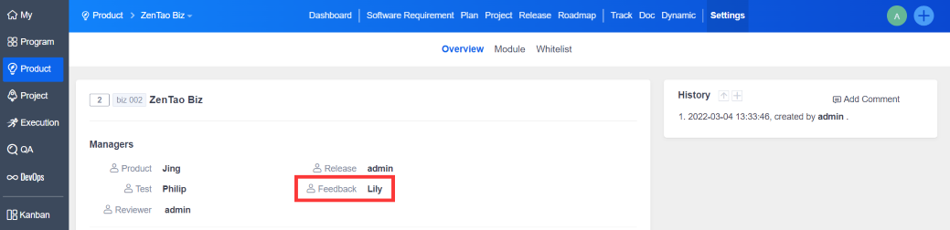 If a feedback manager is set when creating the product, the feedback will assign to the manager.