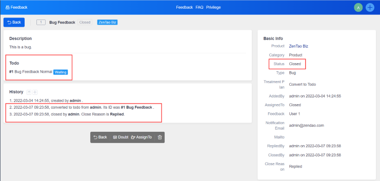 The title of the Todo will be the title of the feedback by default. The feedback will be closed automatically when it turns into Todo, and then you can check the details of the Todo.