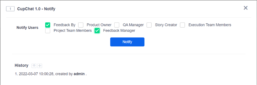 After the feedback is converted into stories and bugs, when a release is created in Product/Project and the stories and bugs are linked, an email notification is available to be sent to the person related to the feedback.
