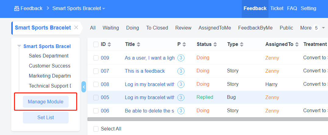 The feedback functionality in ZenTao Biz Edition allows for efficient management of post-sales service and technical support for delivered products.