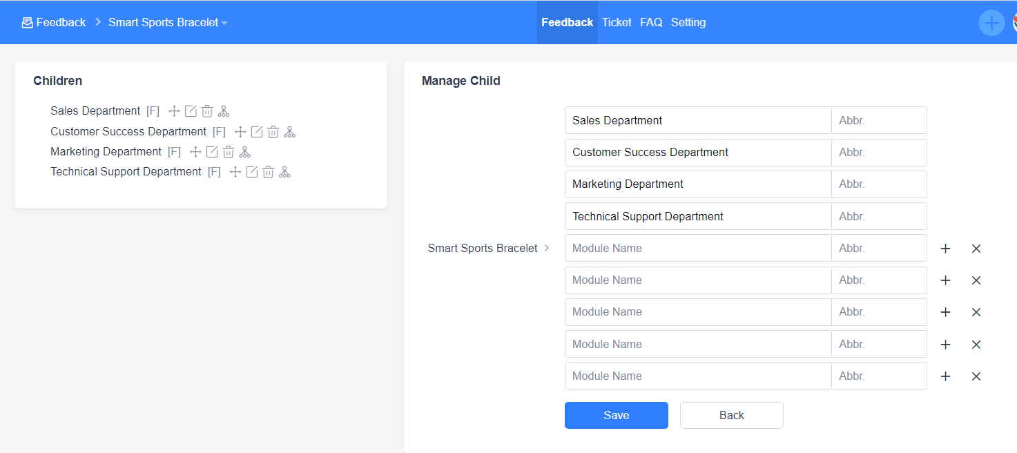 Prior to creating feedback, it is advisable for administrators to manage feedback module in Full Feature Interface - Feedback - Feedback List.
