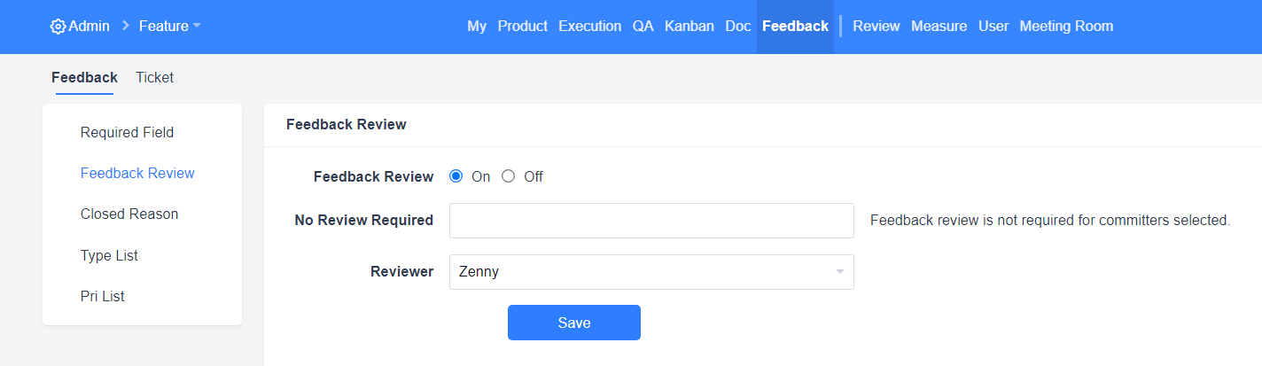 By default, feedback reviews are not activated. If you wish to enable them, you can access the Admin - Feature - Feedback - Feedback Review to turn it on and designate review personnel.
