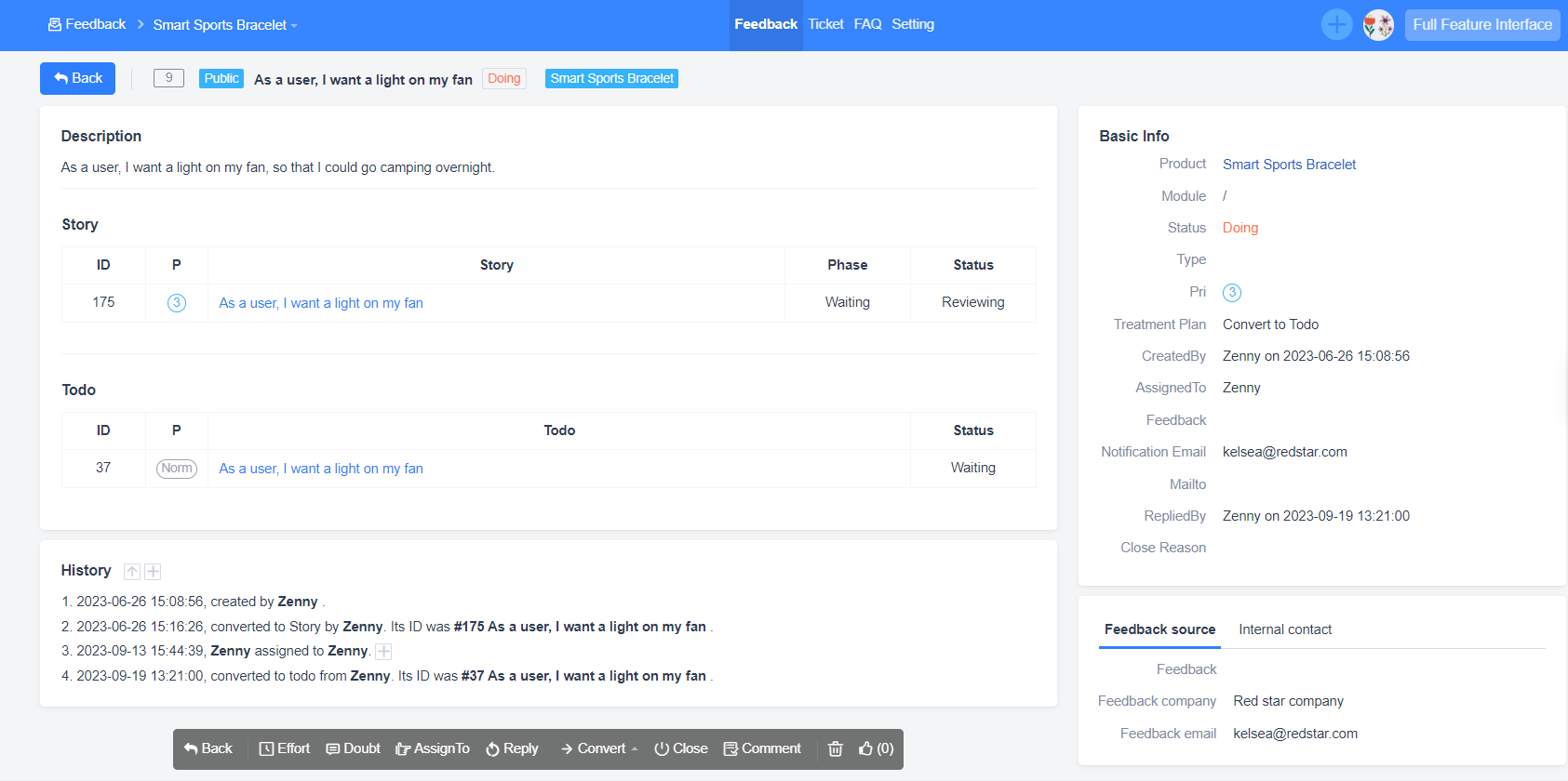 Once an issue is submitted, the R&D team can directly respond, convert it into a requirement, or classify it as a bug. This streamlined process ensures effective communication and prompt resolution.