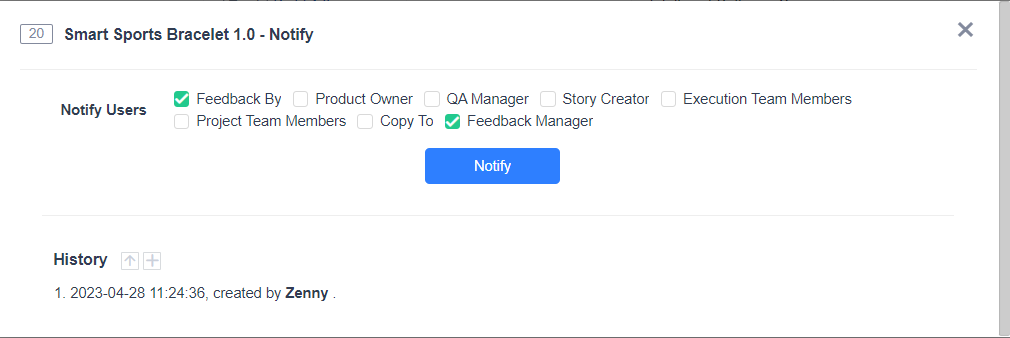 If the created release has not been associated with any stories or bugs yet, the notification button will be grayed out.