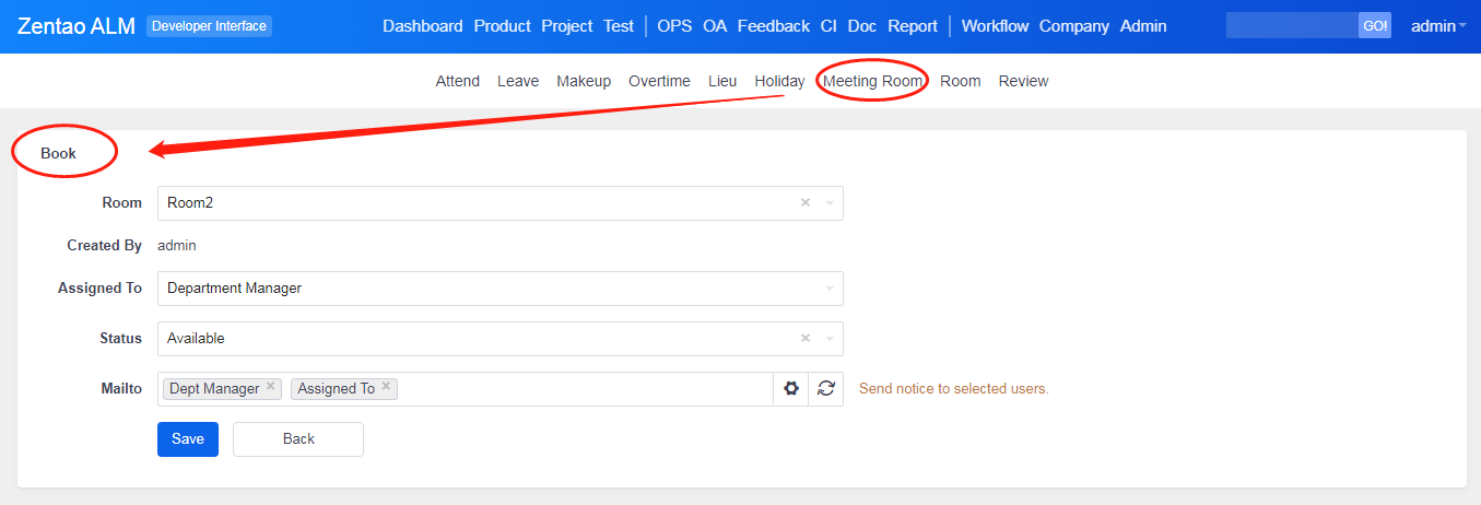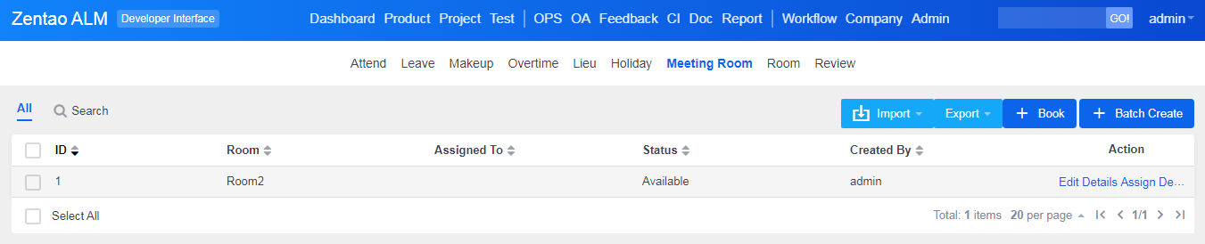 After the Meeting Room Booking is added to ZenTao, let's see how to book a meeting room in ZenTao.