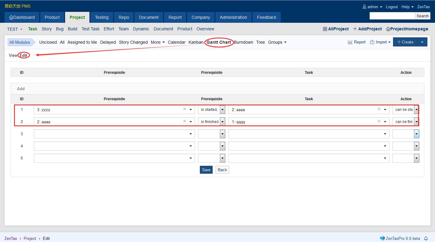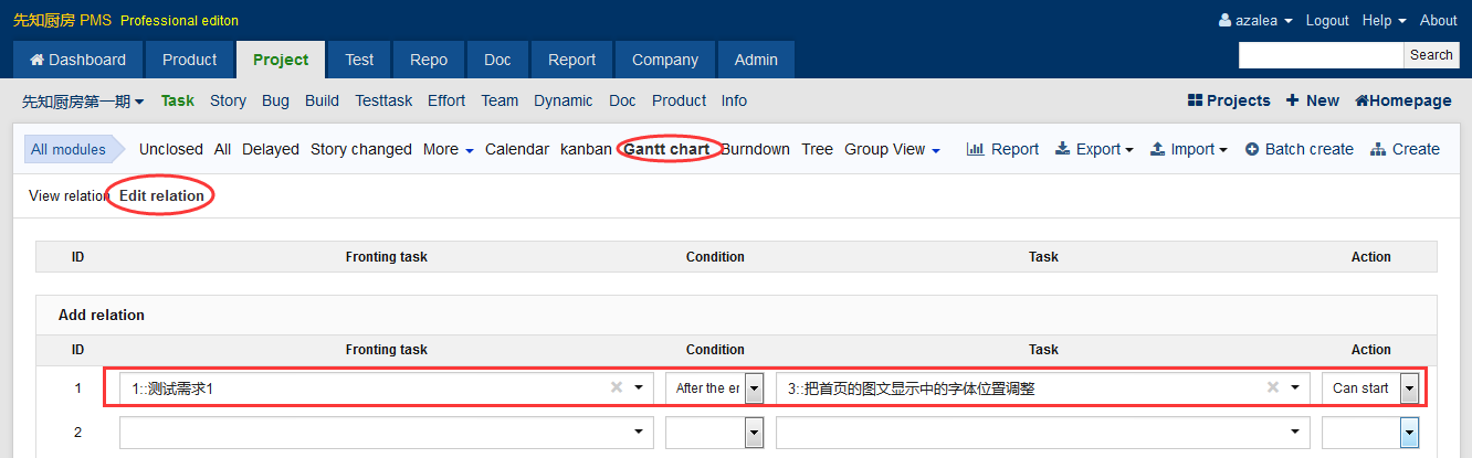 The four types of task dependencies are presented in ZenTao. Specific definitions of task dependencies can refer to the definition of Microsoft project here https://support.office.com/en-us/article/Link-tasks-in-a-project-31b918ce-4b71-475c-9d6b-0ee501b4be57?ui=en-US&rs=en-US&ad=US