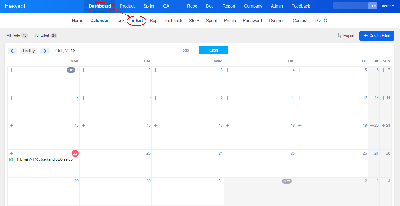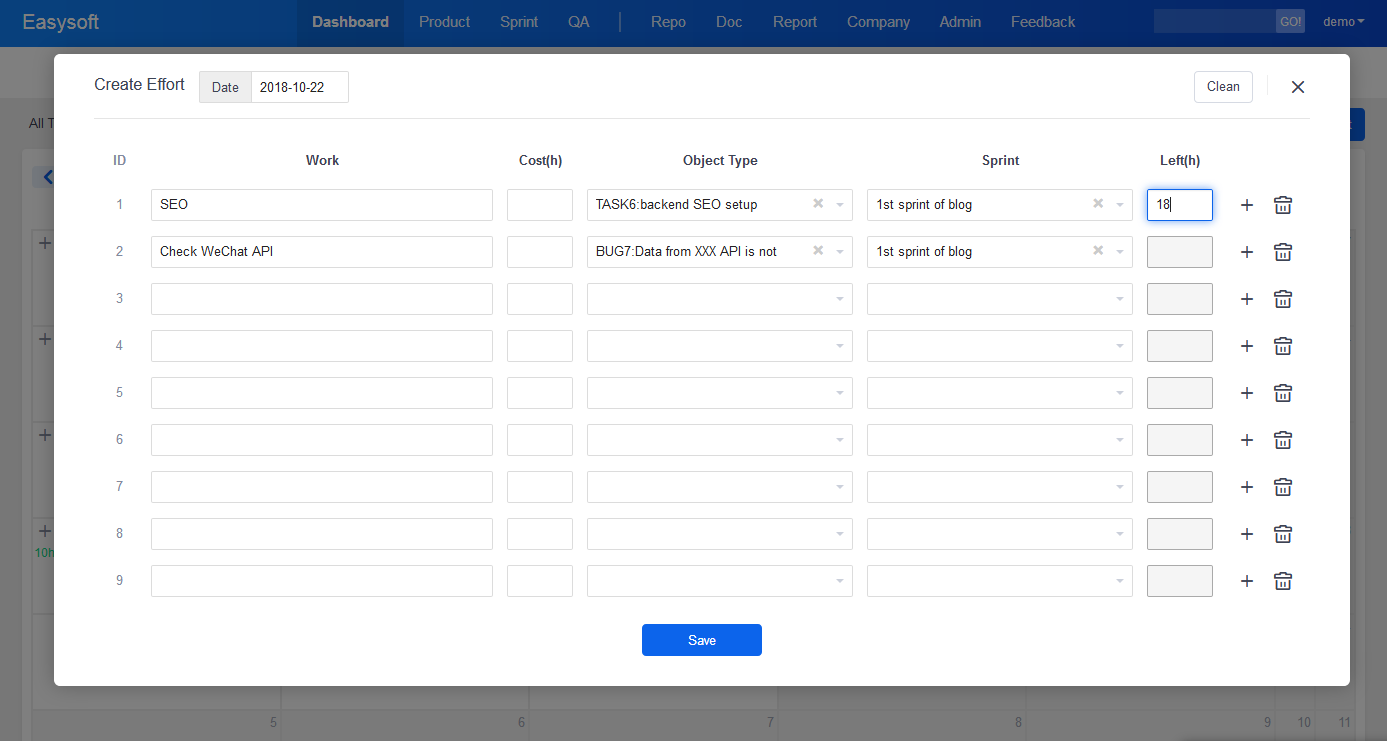 - When you add an Effort, ZenTao will automatically record your actions and create a history for you, which will save a lot of time for you.