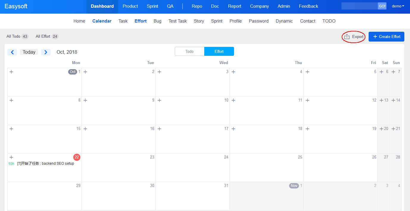 If you use ZenTao open source and use Effort and Excel Import/Export extensions, you can export Excel files.