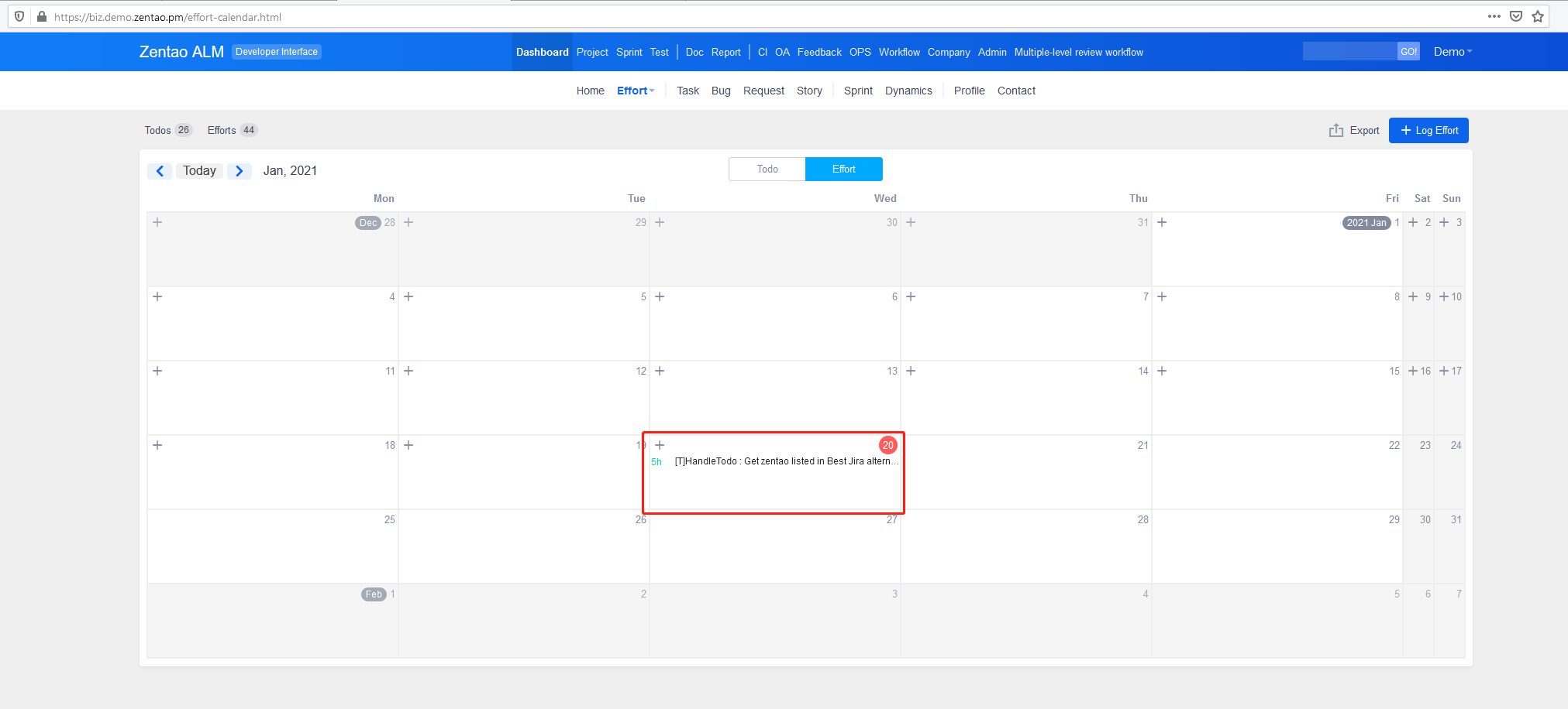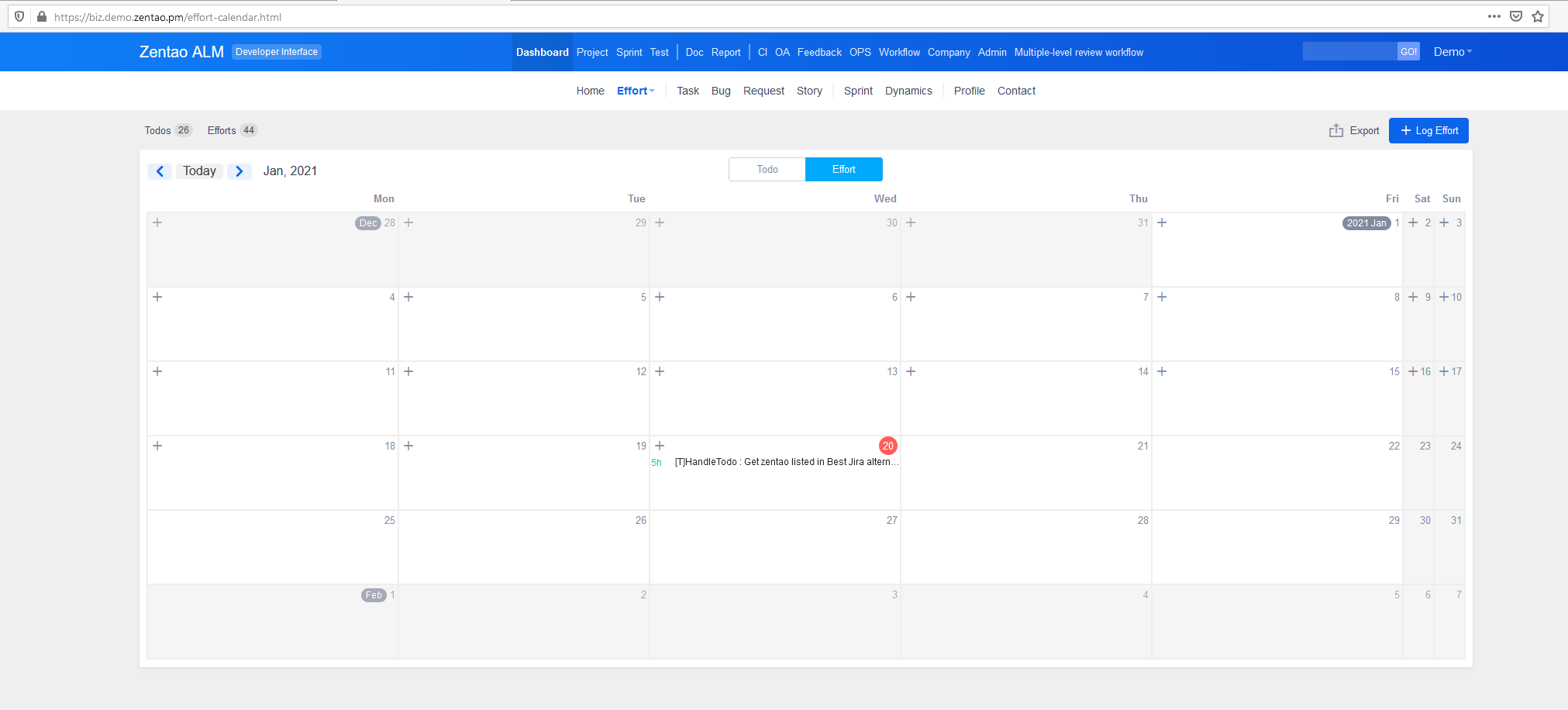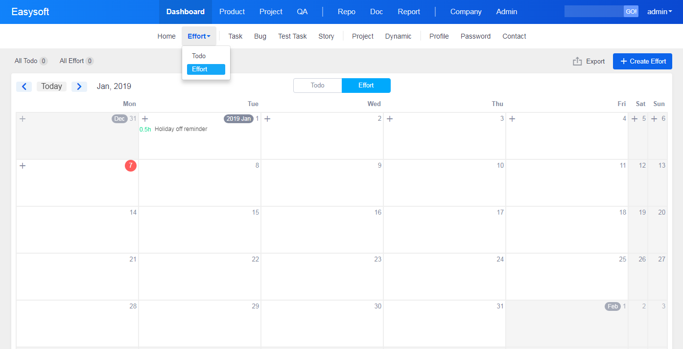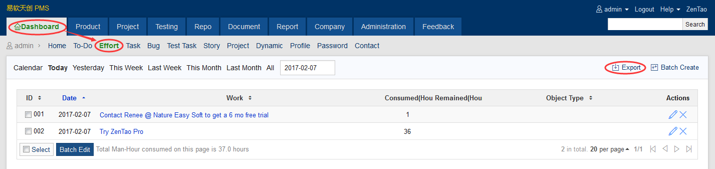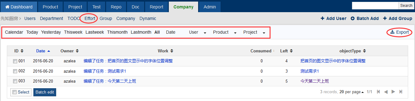 Considering that a lot of companies have to check the effort of their employees, Effort is developed in ZenTao Biz.