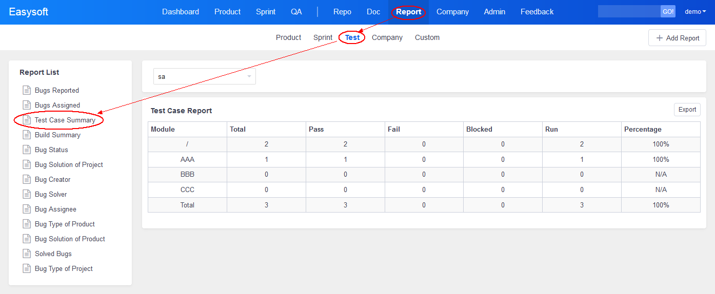 Go to Report, and you can generate reports on your team, cases, and builds. It is easy and convenient to export data and summarize your work.