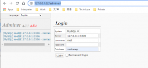 The default setting of ZenTao Enterprise is that database can only be logged in onZenTao sever. Enter http://127.0.0.1:PORT (Port number is required, if it is not 80), then click "MySQL" to enter "Adminer".