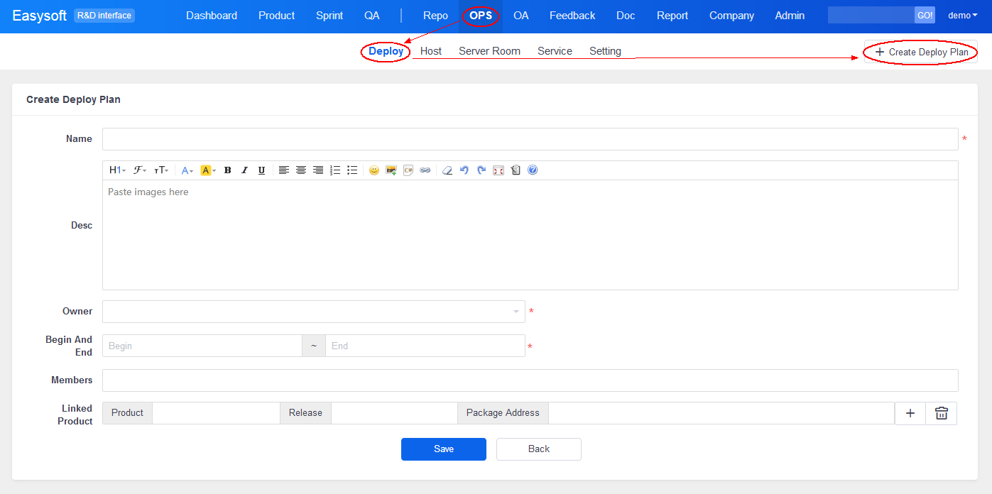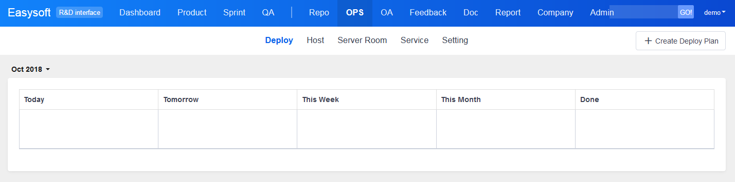 Go Ops->Deploy to check the planning of deployments. Click Create Deploy to create a deployment plan.