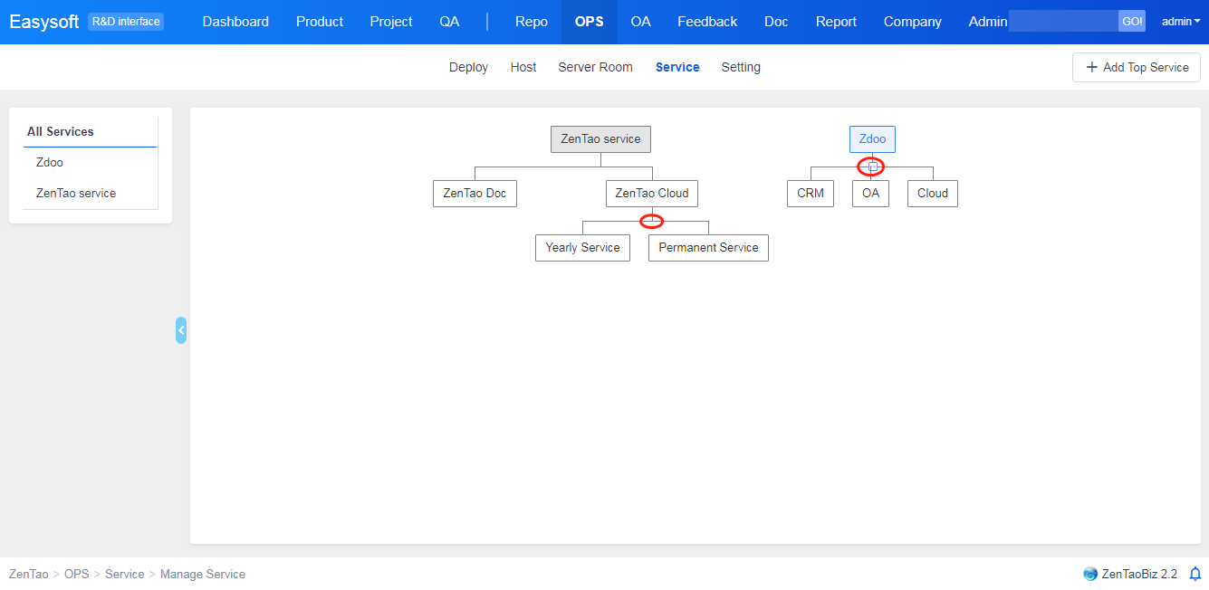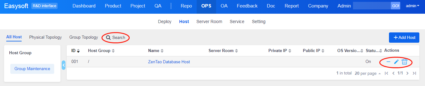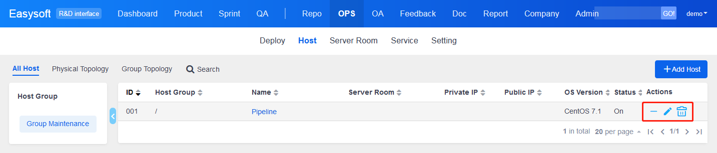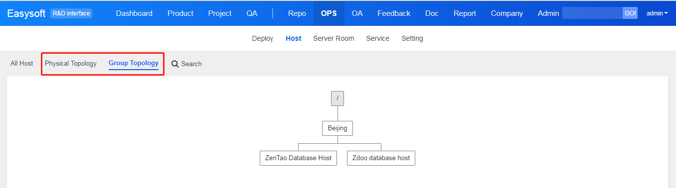 DevOps management module in ZenTao is to manage hosts and servers, including physical network, software and hardware, and business systems which provide services.