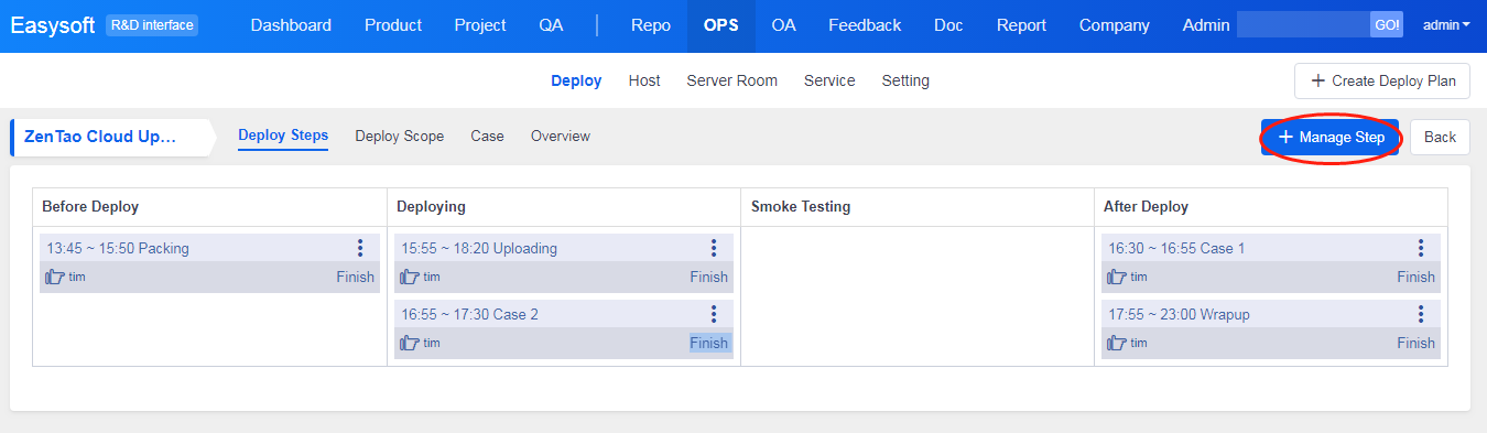 - Click Manage Step to edit, add, or delete steps of a deployment.