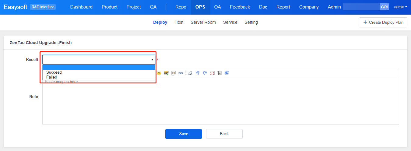 - At the end of the deployment, you can click Finish and choose the result for it, such as Succeed or Failed.