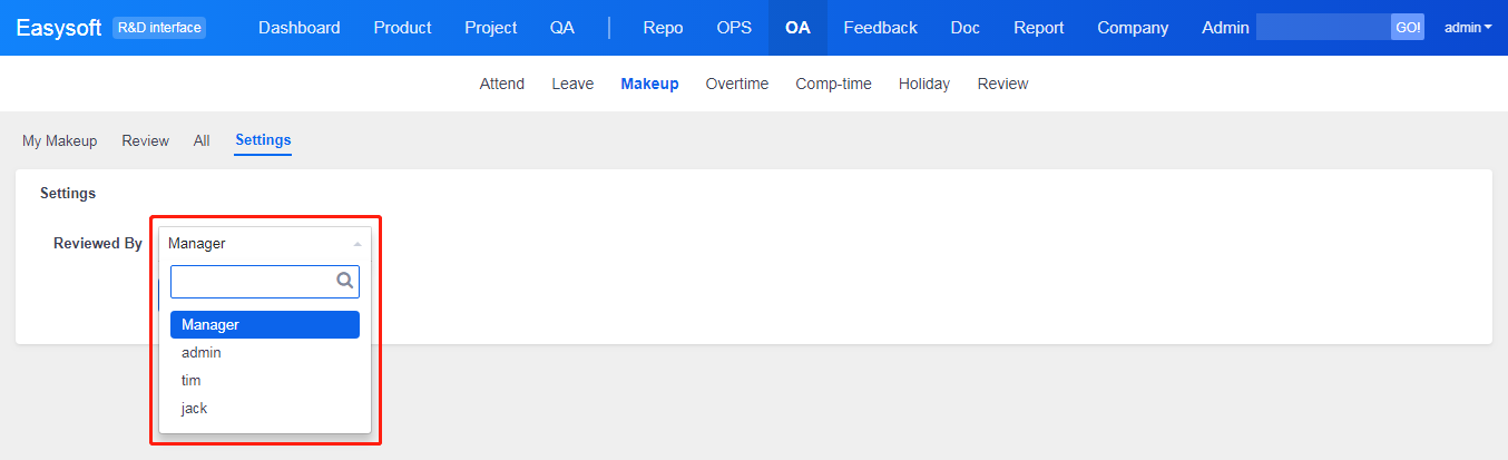 Dept Manager can Pass or Reject the makeup applications within the department on the page of My Review.