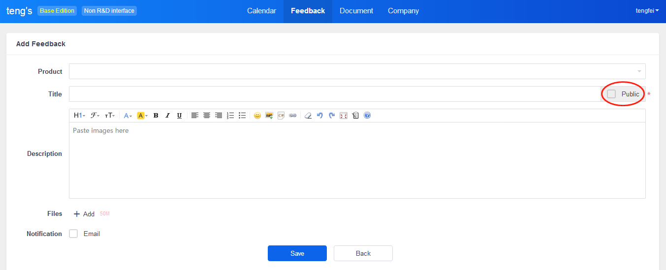 - Conversely, if the option is not selected, the feedback remains private. In the Operation Management Interface, only the creator of the feedback can view it, while users with corresponding product permissions can access it in the Full Feature Interface.