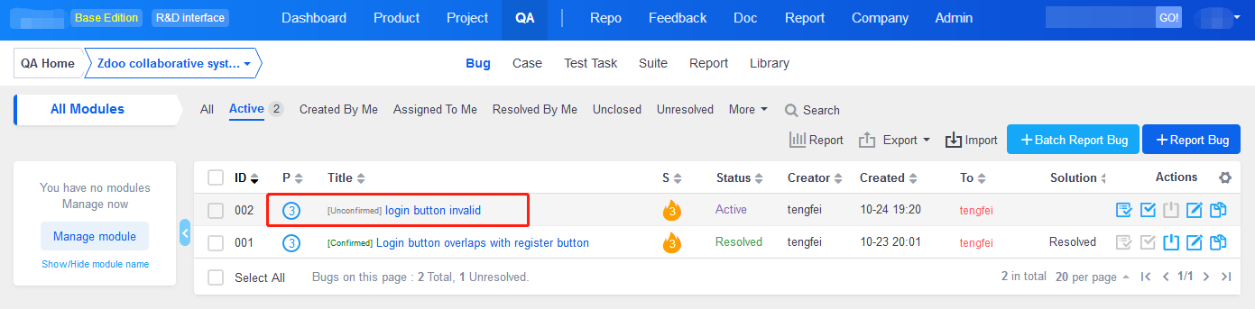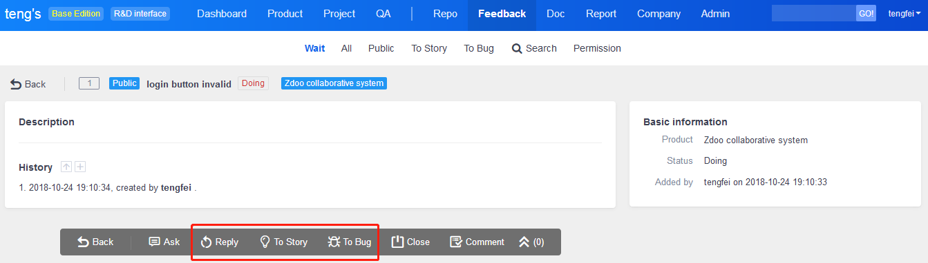 Let's use bug conversion as an example to explain the process of converting feedback. The process of converting to requirements and tasks is very similar to converting to bugs.