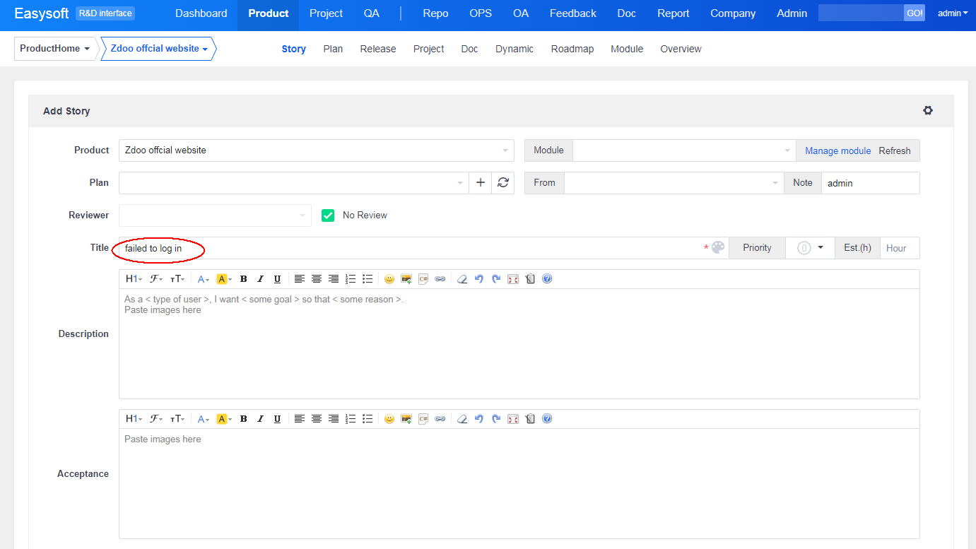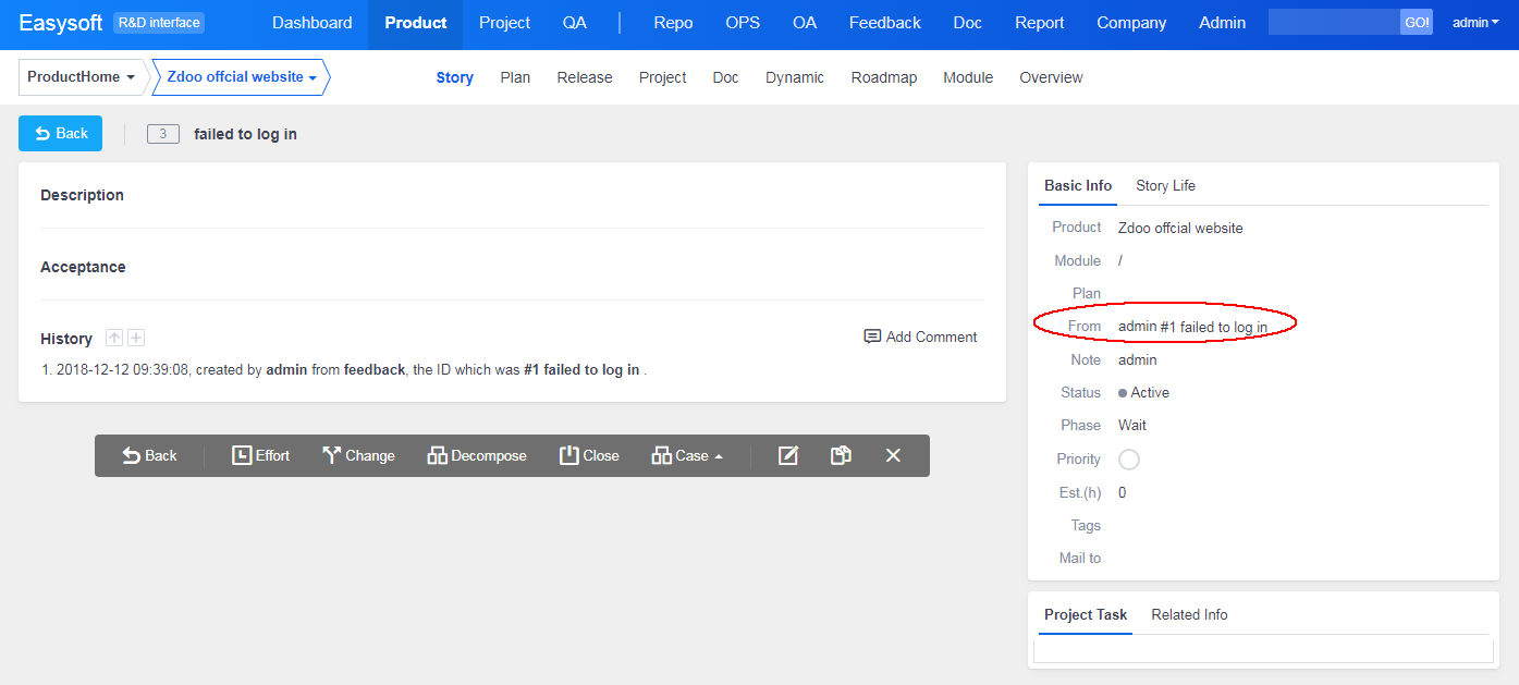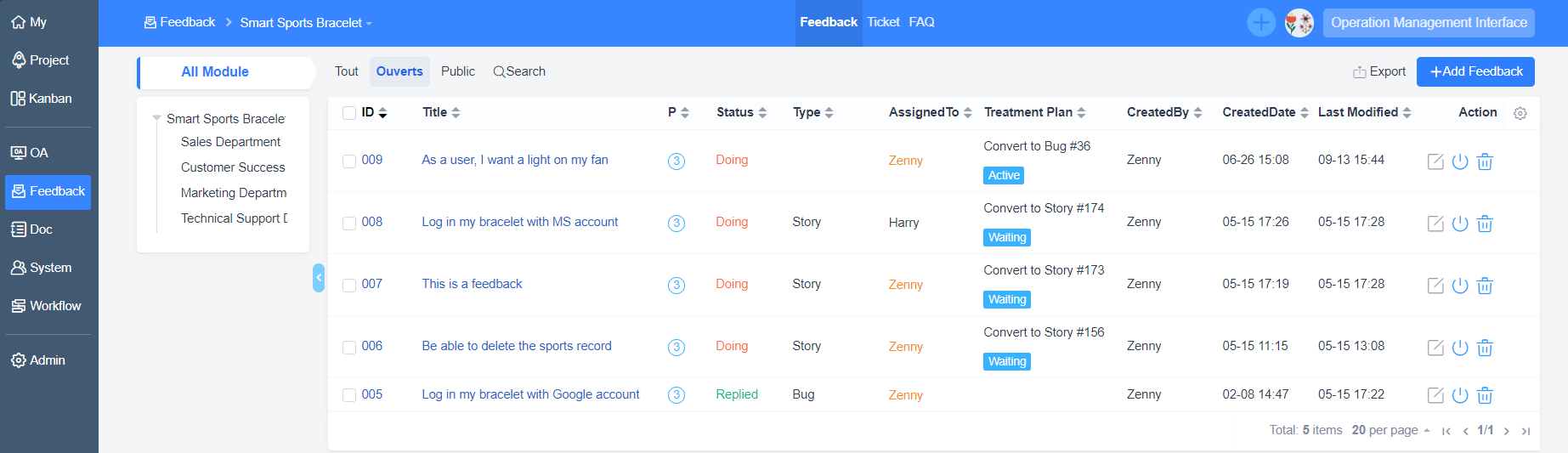 The feedback functionality in ZenTao Biz Edition allows for efficient management of posy-dales service and techical support for delivered products.