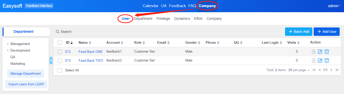 Prior to creating feedback, it is advisable for administrators to manage feedback module in Full Feature Interface - Feedback - Feedback List.