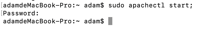 sudo apachectl start // start Apache sudo apachectl stop // stop Apache sudo apachectl restart // restart Apache