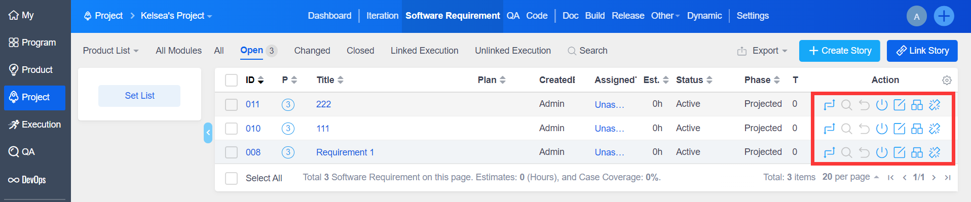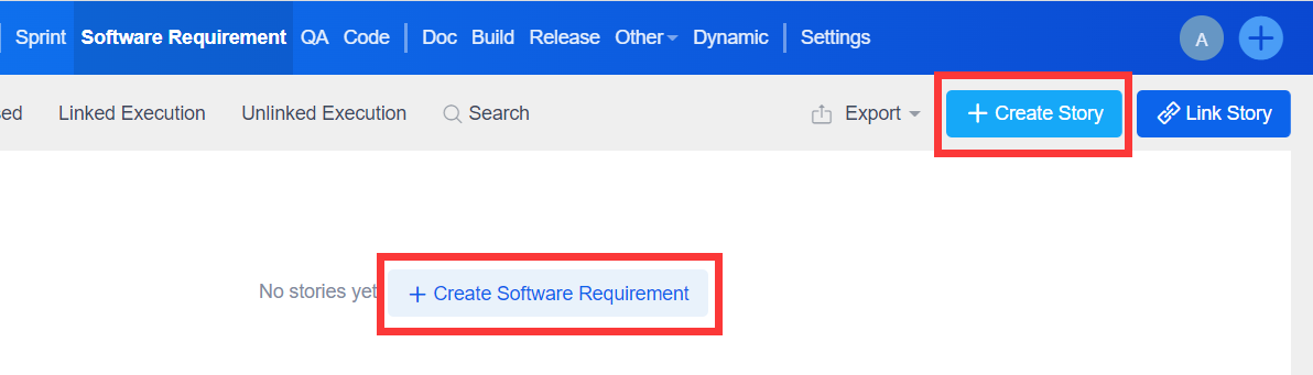 1.2 Click "Create Software Requirement" or "Create Story".