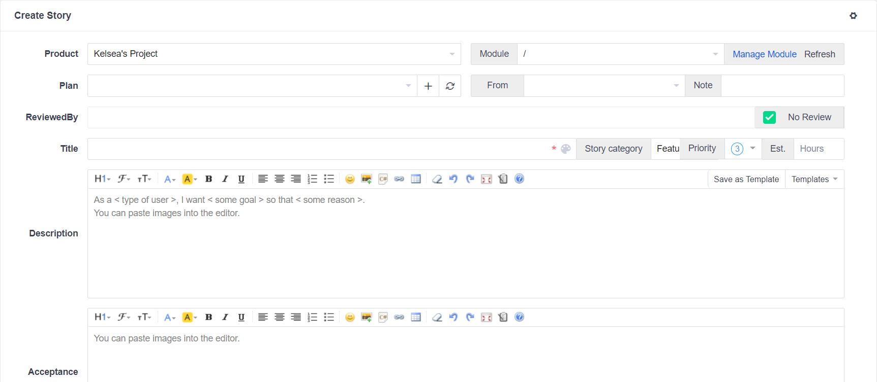 - Can be linked with the product requirement which belongs to the project