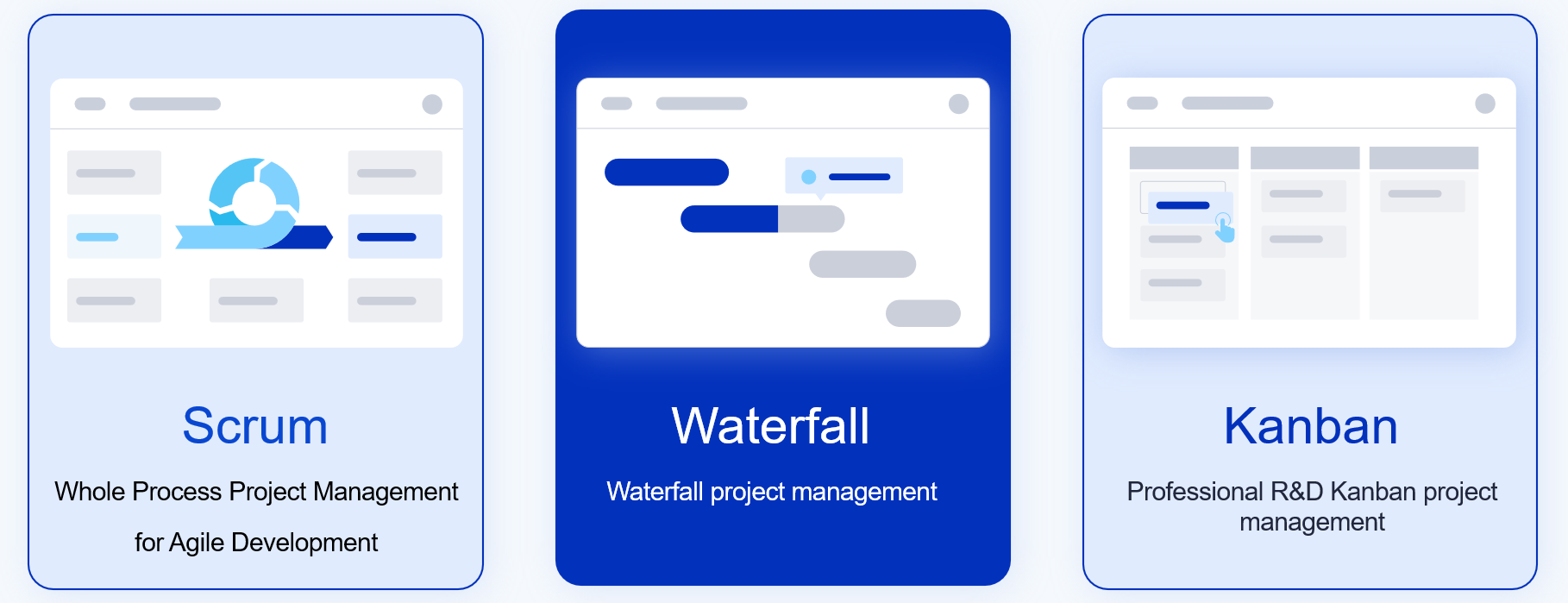 ZenTao's waterfall project model divides the software life-cycle into six basic phases: Requirements, Design, Development,Testing, Release, and Review. Scrum projects have a completely different life cycle, consisting of one or more executions, each of which is relatively independent of the other, independently developing requirements and solving some bugs.