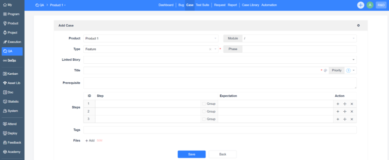 Test owners can assign cases directly in the “QA- Case” page. Testers execute use cases in the use case list to test whether the required functions are completed and verify whether the bugs are fixed.