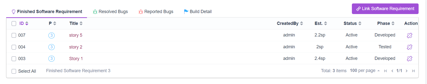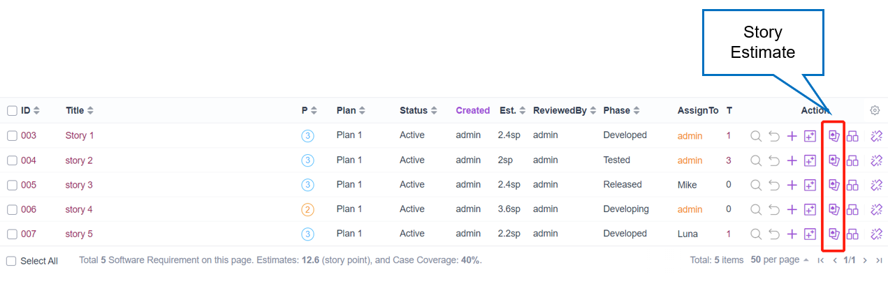 - Select Execution > Execution List > Software requirement > Story Estimate.