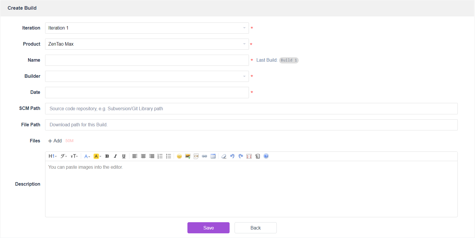 - For product-based project, select Execution > Iteration List > Build > Create Build.
