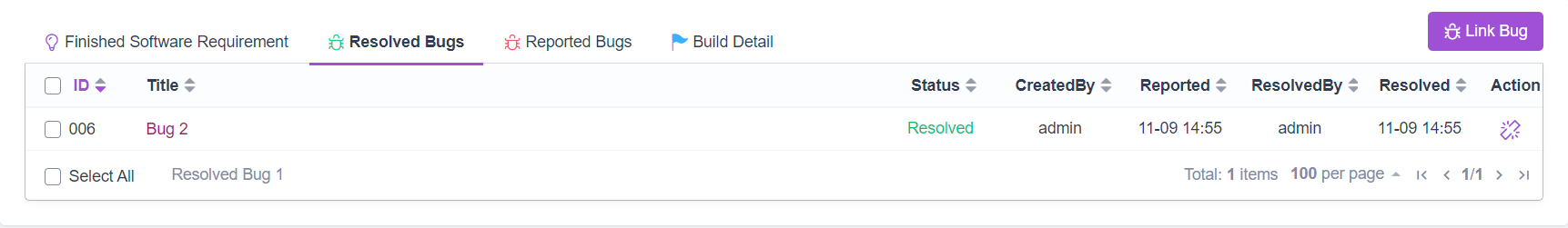 - Select Build Name < Resolved Bugs < Link Bug.
