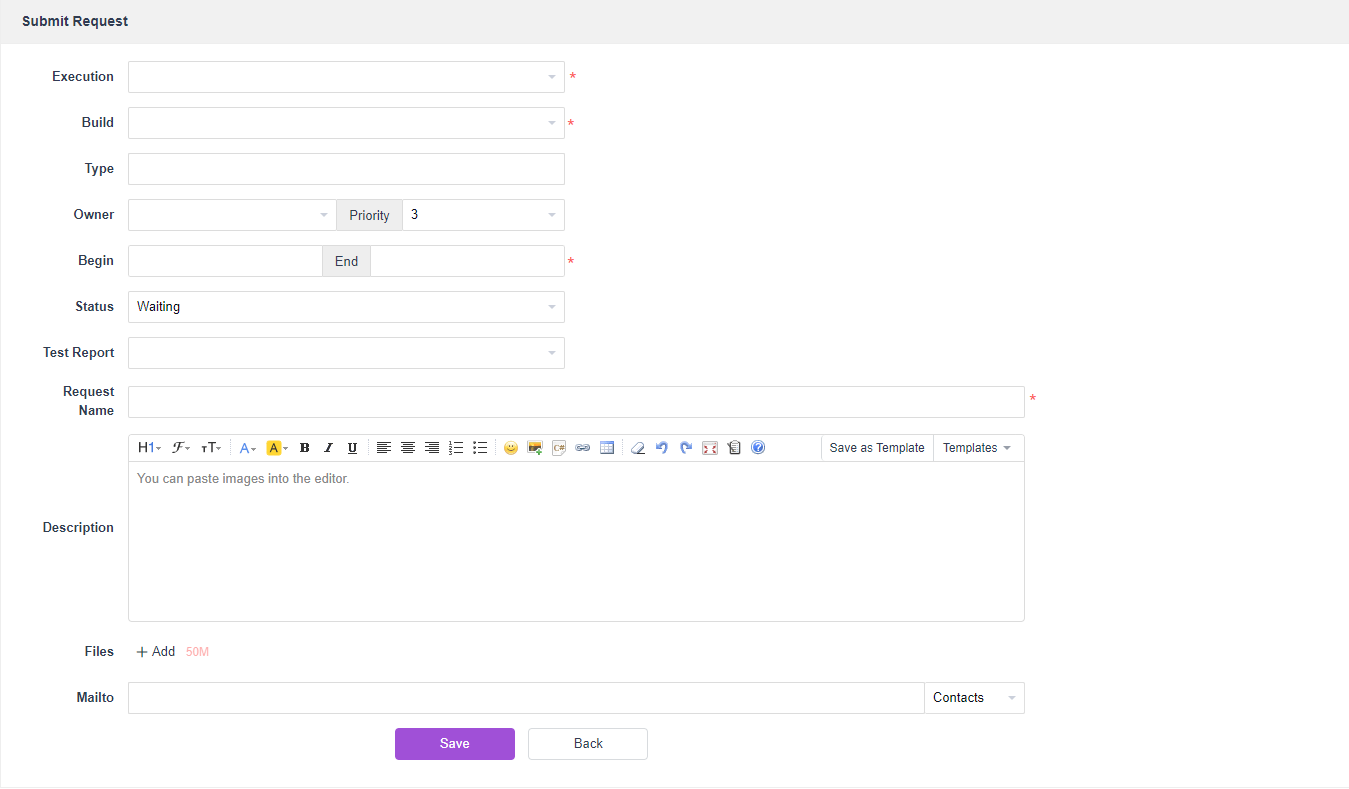 In ZenTao, you can submit test requests via the following three paths: