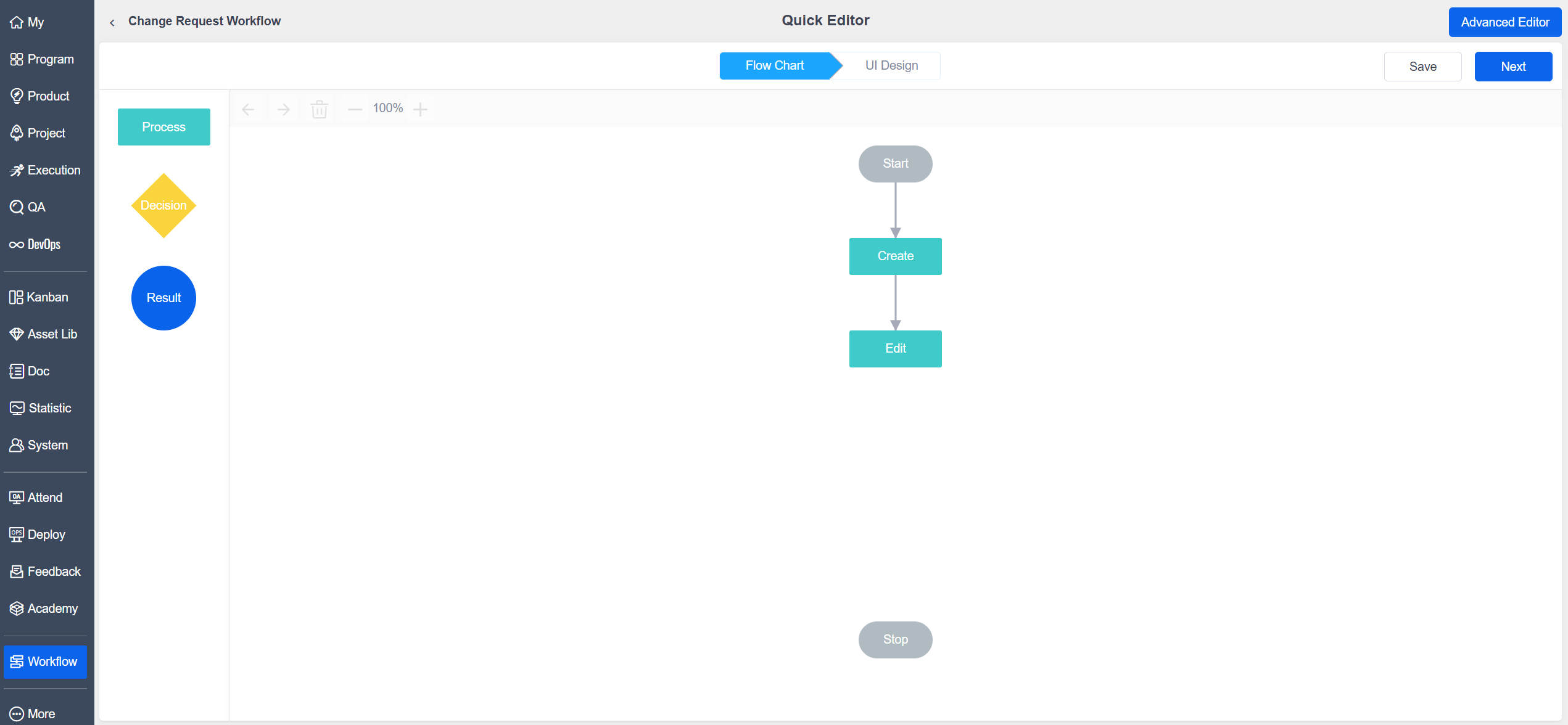 ZenTao can be highly customized with the workflow module. As for now, Workflow has 15 built-in processes based on the usage process of ZenTao, the functional modules, and the customization needs, including product view, product plan, release, requirement/story, program, project, execution, build, task, bug, case, test request, suite, case library, and feedback.