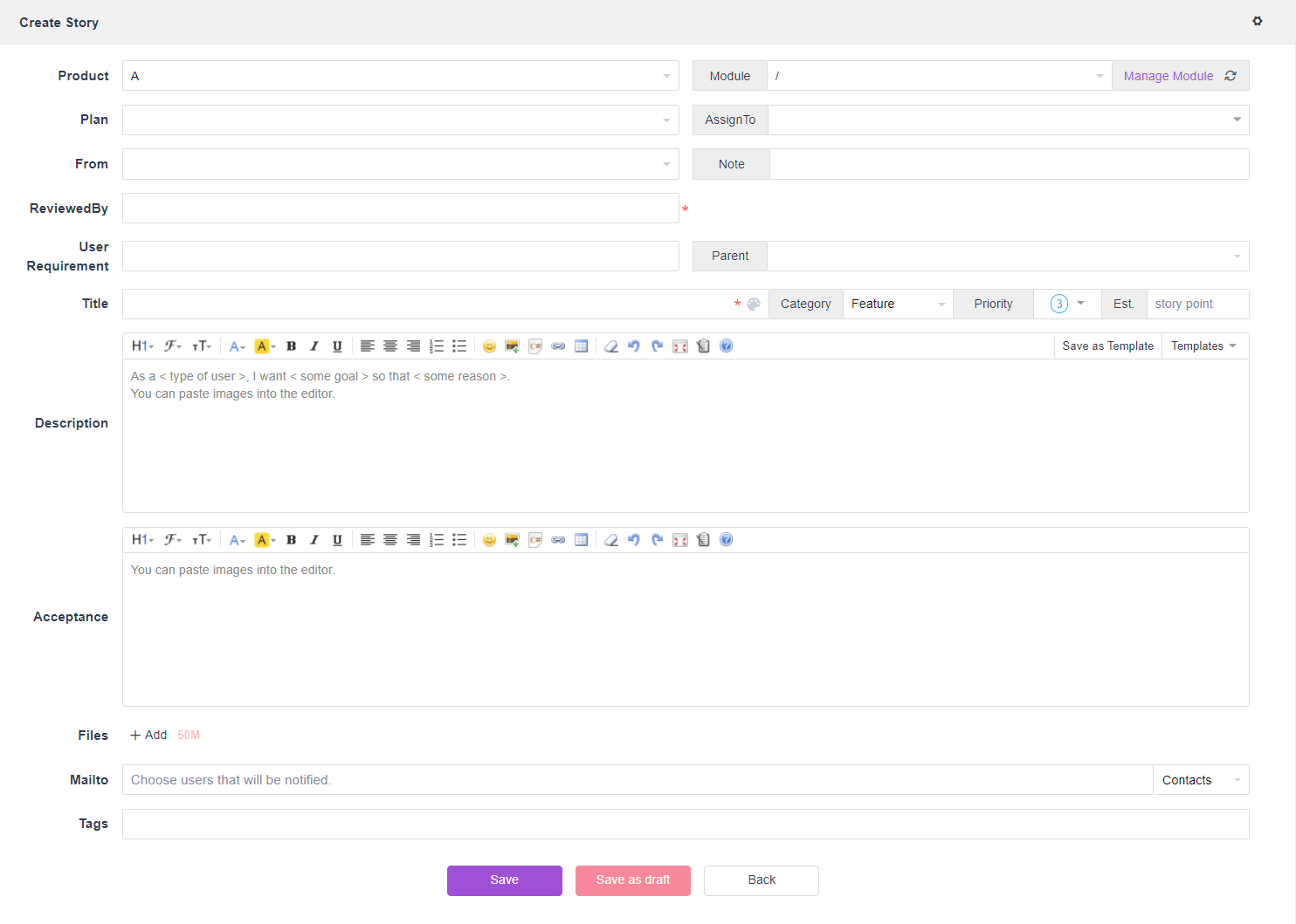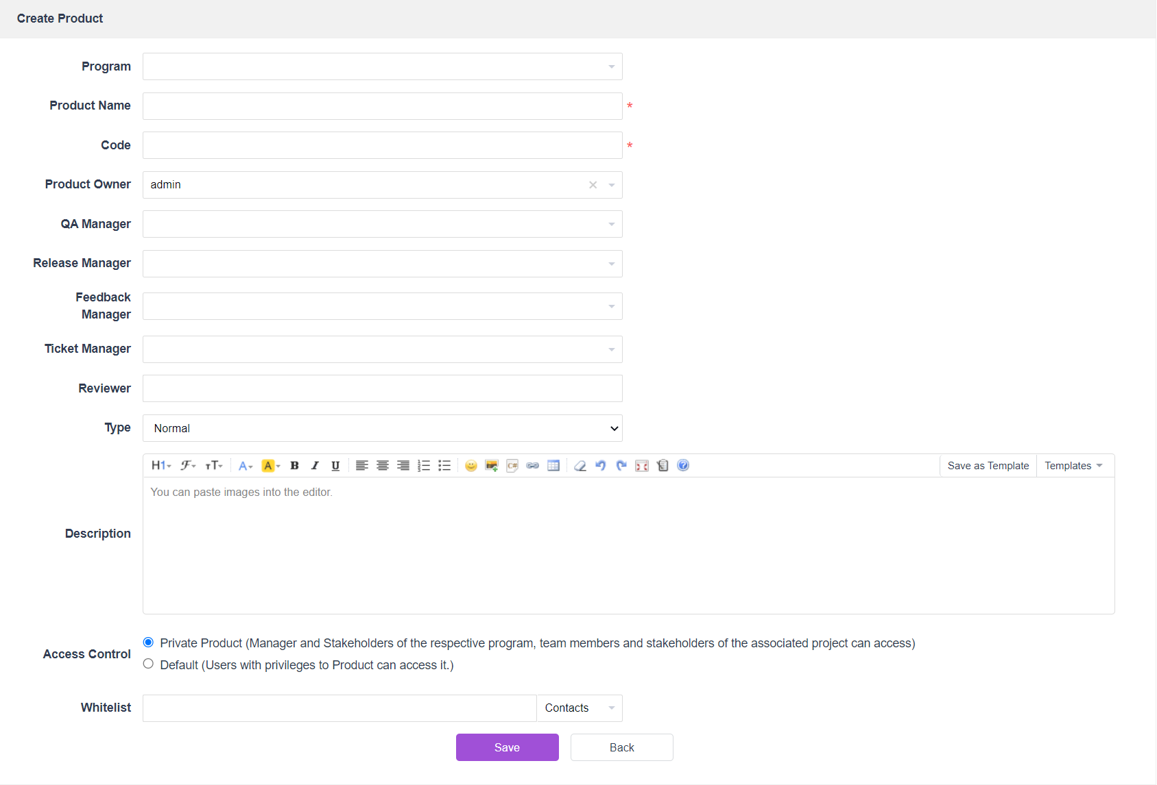 - Type (If you tick the Non-product-based checkbox, you will not be able to create executions/iterations under this project.)