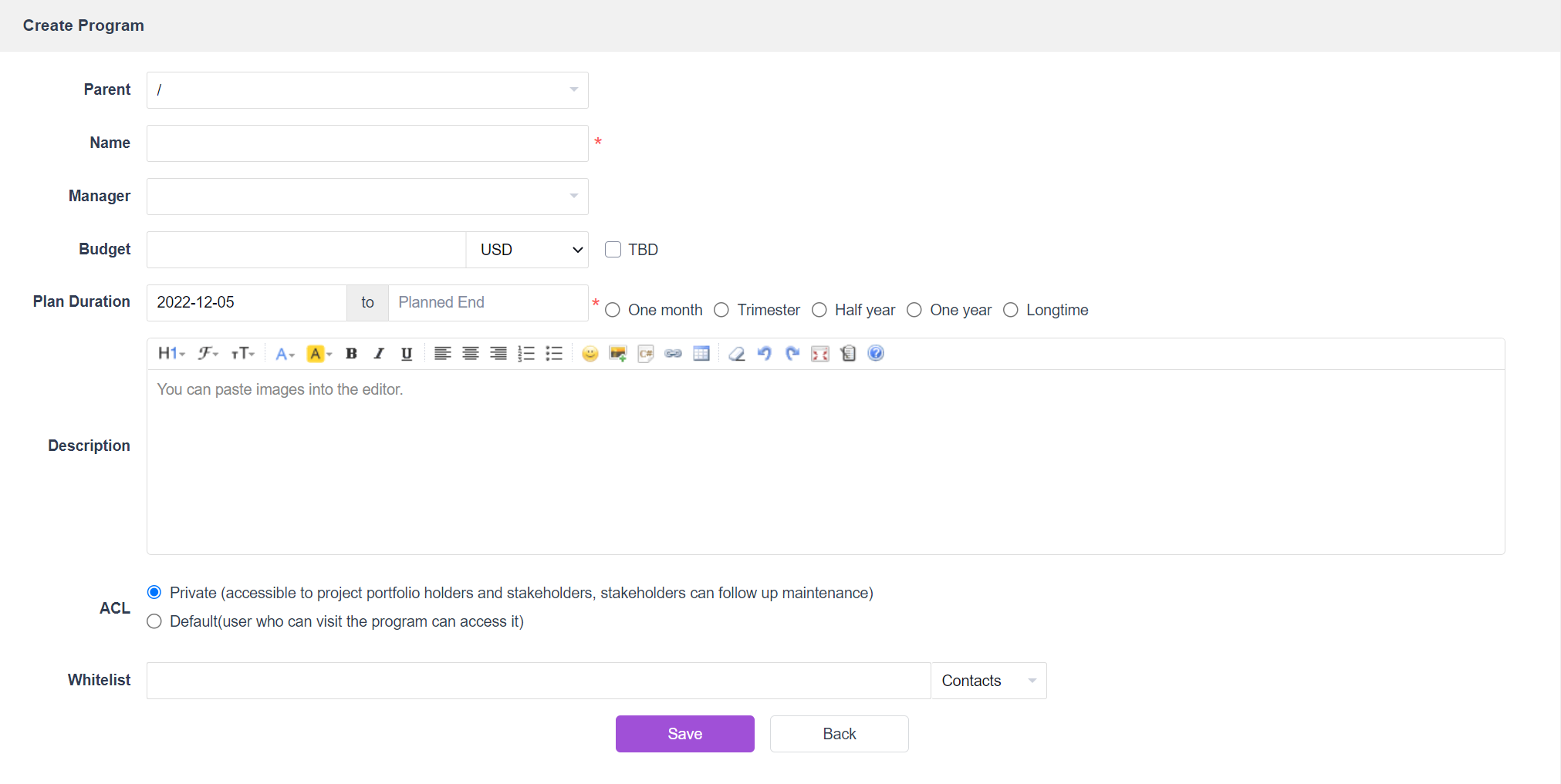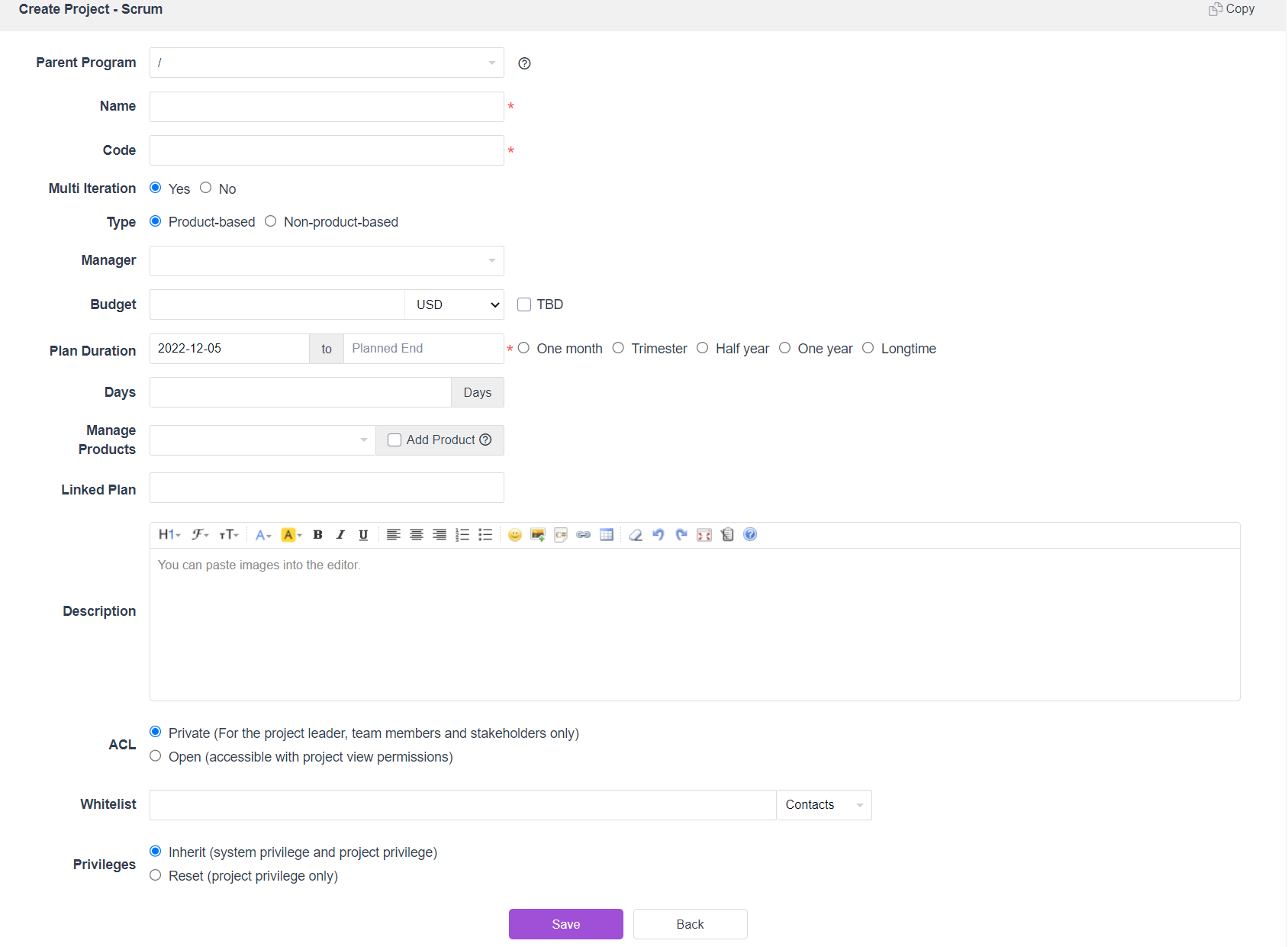 - Multi Iteration (If you tick the No with multi iteration checkbox, you will not be able to create iterations under this project.)